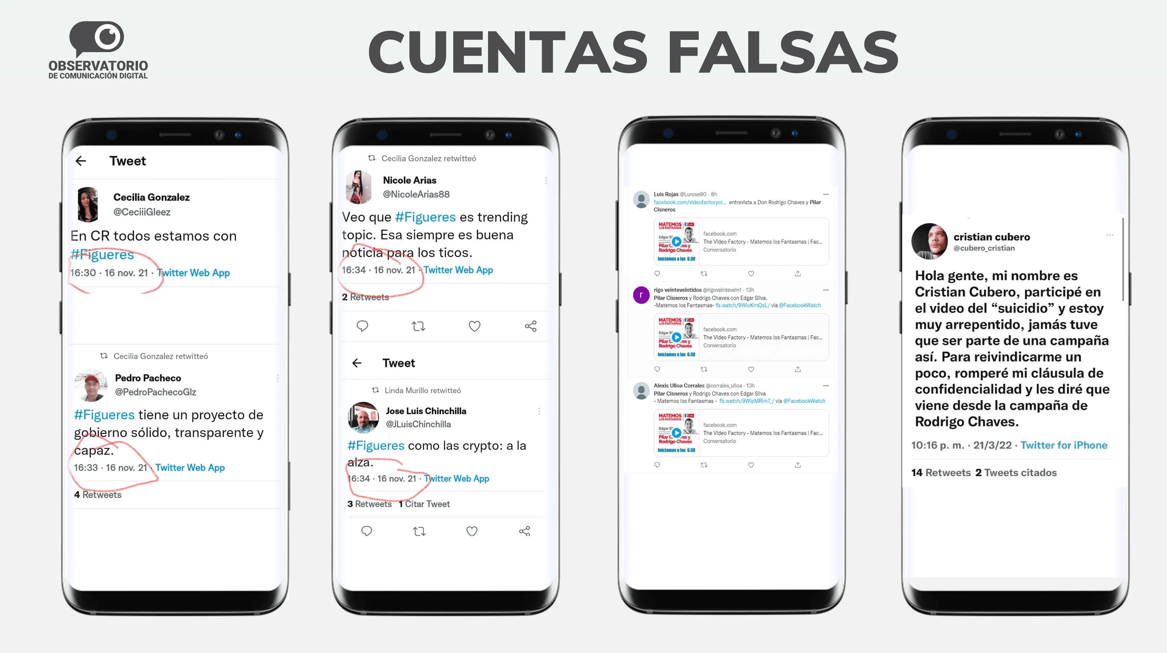 Estos son algunos ejemplos de algunas cuentas falsas que se lograron detectar durante la campaña política.