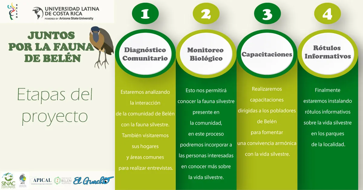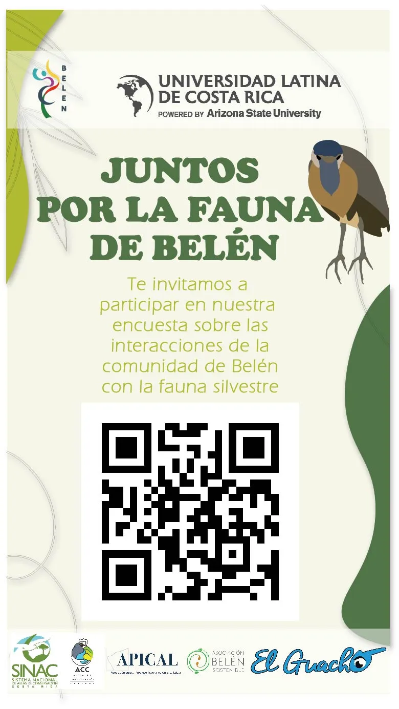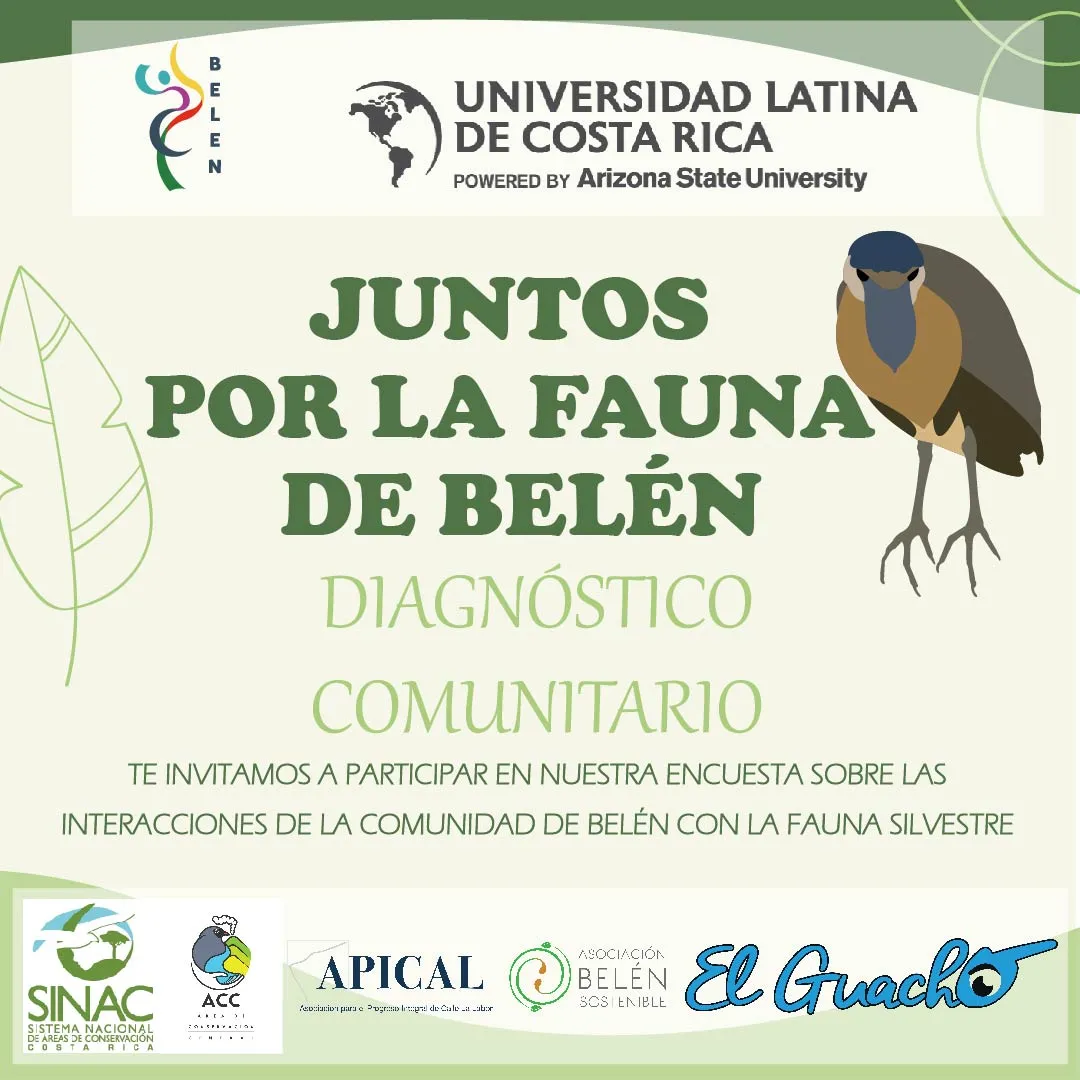 El Proyecto Juntos por la Fauna de Belén es un esfuerzo conjunto entre la Universidad Latina de Costa Rica, la Municipalidad de Belén, el Sistema de Áreas de Conservación y las asociaciones y organizaciones comunales de Belén por desarrollar una cultura en conservación de la vida silvestre en la comunidad. Es un proyecto interdisciplinar que involucra a la sociedad civil, en el proceso de monitoreo de fauna silvestre urbana para su protección y convivencia armónica.