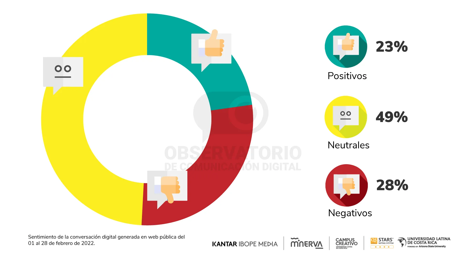 La información incluyó los datos recolectados entre el 01 y 28 de febrero de 2022; lo cual generó un volumen de 64.536 menciones y que tuvieron este comportamiento a nivel de sentimientos en la conversación digital.