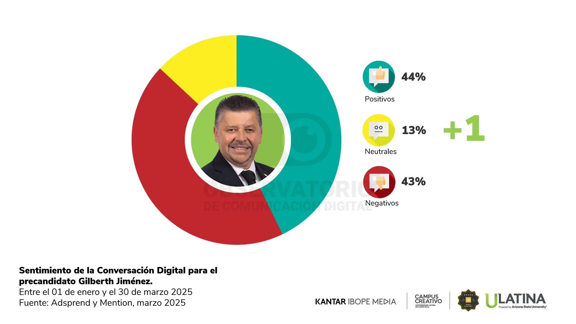 Gilberth Jiménez: El “Turqueso” entre el carisma y la confusión (Índice de sentimiento neto: +1) Gilberth Jiménez fue el precandidato con mayor volumen de conversación, aunque su balance emocional quedó ligeramente en positivo, mostrando una figura polarizadora entre quienes lo ven como genuino y quienes lo descalifican por su forma de comunicar.