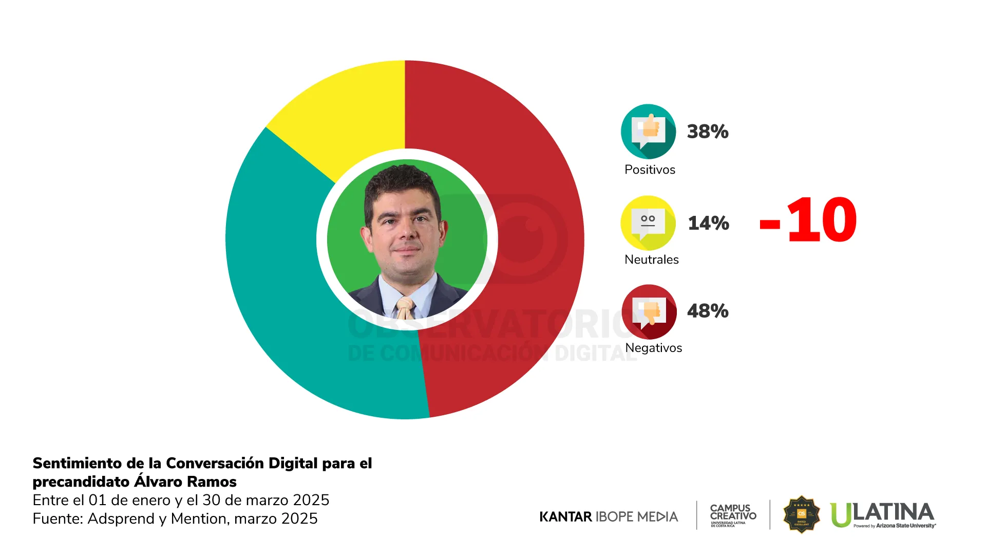 Álvaro Ramos fue el precandidato con mayor saldo negativo en sentimiento, a pesar de tener una sólida trayectoria profesional y técnica (según valoraciones de los mismos cibernautas). Su imagen fue absorbida por una narrativa de continuidad con el pasado cuestionado del PLN.