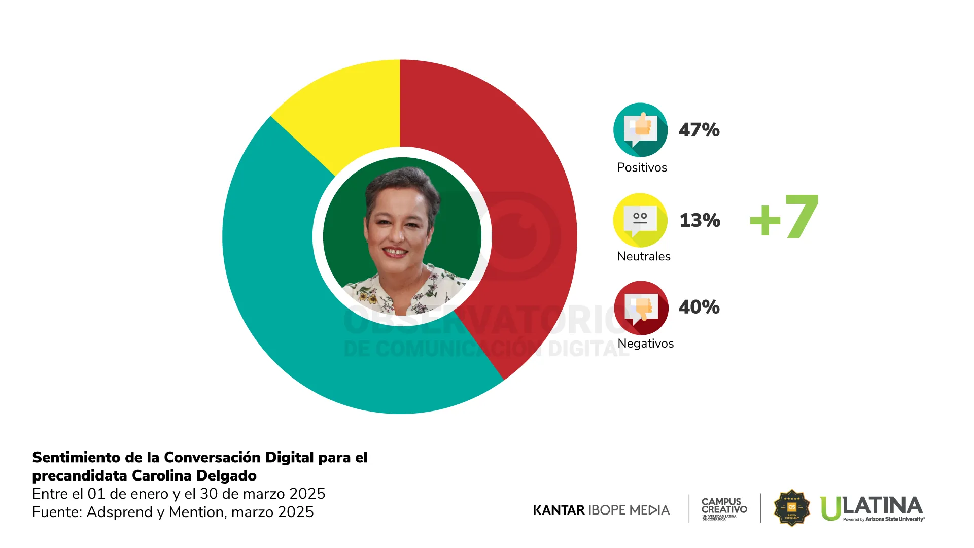 Carolina Delgado: La resistencia, pero sin alto volumen (Índice de sentimiento neto: +7) Carolina Delgado emergió como la figura con mejor percepción emocional neta en digital, gracias a un conjunto de elementos simbólicos que reforzaron su carácter firme y desafiante frente al poder interno del PLN.